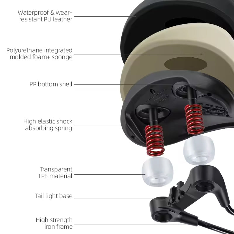 The CushiCore combines advanced hollow breathable design with waterproof spring shock technology, ergonomic taillight compatibility, and premium soft padding integration to deliver the ultimate cycling comfort experience for riders of all levels and distances.